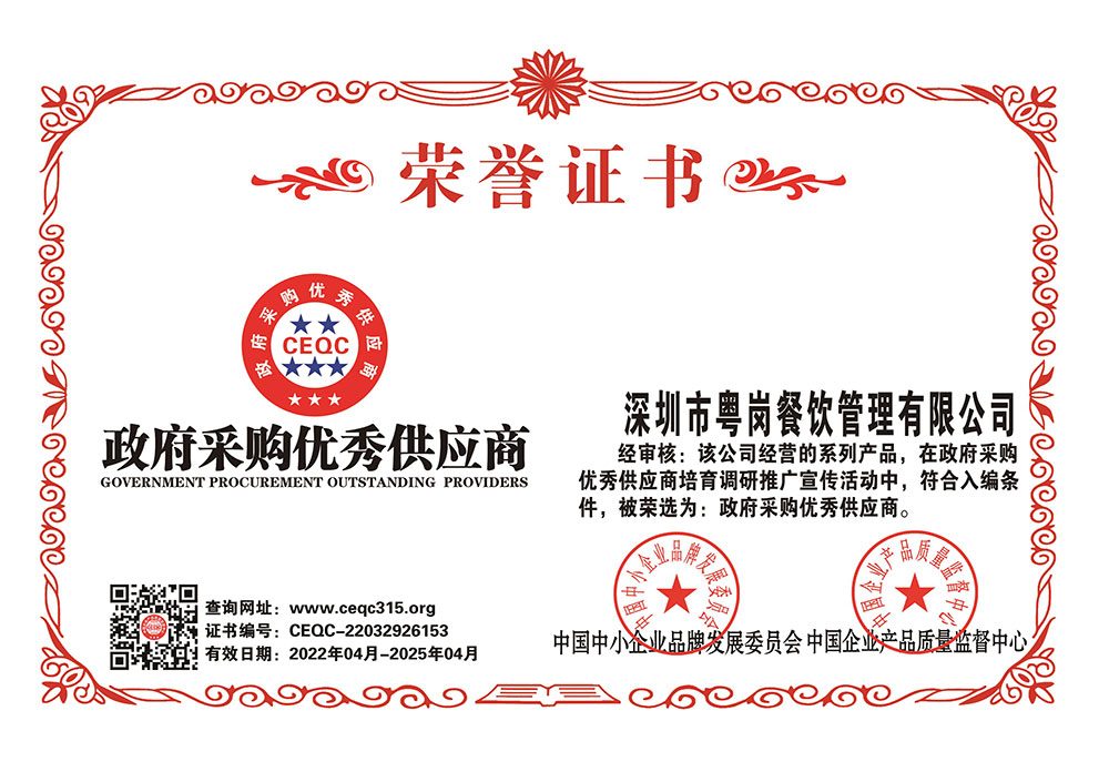 深圳市粵崗餐飲管理有限公司,是一家集蔬菜種植和農(nóng)副產(chǎn)品配送為一體的專業(yè)型餐飲公司,主要為學(xué)校、工廠企事業(yè)機(jī)關(guān)單位提供蔬菜和農(nóng)副產(chǎn)品配送服務(wù)。公司自成立以來始終以質(zhì)優(yōu)價(jià)廉、服務(wù)至上為原則,嚴(yán)格按照ISO:9001國際標(biāo)準(zhǔn)體系進(jìn)行管理。同時(shí)建立了行業(yè)領(lǐng)先的配送中心、大型冷庫和保鮮庫、檢測(cè)中心以及專業(yè)化的配送團(tuán)隊(duì),能長期安全、穩(wěn)定、準(zhǔn)時(shí)的配送貨物。我們所有蔬菜均經(jīng)過初步加工、無黃葉,無泥沙等雜質(zhì),利用率達(dá)97%以上...保障向用戶提供的各類食材的衛(wèi)生和質(zhì)量。公司為了適應(yīng)不同客戶的需求,配有專業(yè)人員和配送車輛,實(shí)行“一對(duì)一”的服務(wù)體制,一心一意的為客戶服務(wù),秉承粵崗誠實(shí)守信、服務(wù)第一、客戶至上的服務(wù)標(biāo)準(zhǔn),真正讓客戶花最少的錢吃最好的菜。粵崗多年來何以欣欣向榮,因?yàn)槲覀冎乐挥杏掠趽?dān)當(dāng)責(zé)任,才能承擔(dān)更大的責(zé)任,就是因?yàn)?粵崗員工貫徹公司態(tài)度決定一切、細(xì)節(jié)決定成敗的真理,從質(zhì)量抓起,從服務(wù)做起,才創(chuàng)造了如今的規(guī)模化供應(yīng)、統(tǒng)一性配送、專業(yè)化服務(wù)的粵崗。